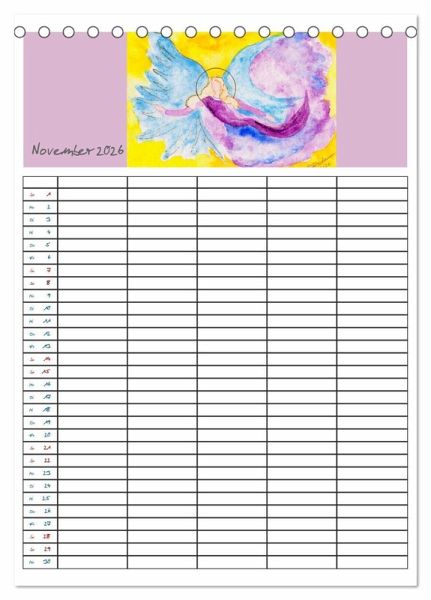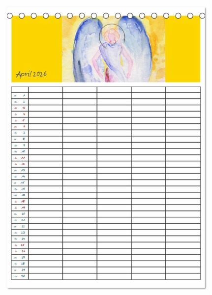 Engelbilder von Gabriele-Diana Bode sind seit dem Jahre 2000 in Deutschland, der Schweiz und Österreich bekannt und erfreuen noch bis heute all jene, die Engelwesen lieben. In diesem Familienplaner zeigen sich die Neuesten Engel, die alle ganz frisch auf dem Aquarellblock gelandet sind. Lassen Sie sich Monat für Monat von diesen himmlischen Wesen begleiten und an Termine, Fristen, Treffen usw. erinnern. Erfreuen Sie sich an diese Boten Gottes, die Sie begleiten und Ihren Tag farbenfroh inspirieren werden.