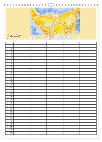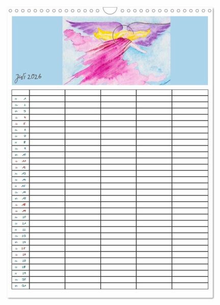 Engelbilder von Gabriele-Diana Bode sind seit dem Jahre 2000 in Deutschland, der Schweiz und Österreich bekannt und erfreuen noch bis heute all jene, die Engelwesen lieben. In diesem Familienplaner zeigen sich die Neuesten Engel, die alle ganz frisch auf dem Aquarellblock gelandet sind. Lassen Sie sich Monat für Monat von diesen himmlischen Wesen begleiten und an Termine, Fristen, Treffen usw. erinnern. Erfreuen Sie sich an diese Boten Gottes, die Sie begleiten und Ihren Tag farbenfroh inspirieren werden.