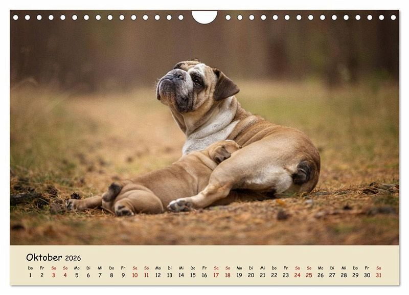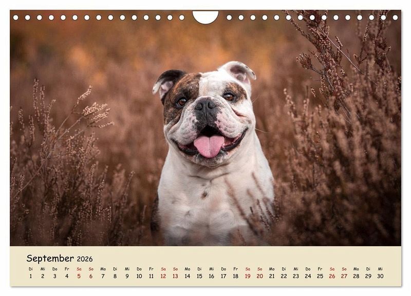 Schnuten zum verlieben, die beim Anblick ein Lächeln auf's Gesicht zaubern. In diesem wunderschönen Kalender ist die liebevolle kräftige Rasse Englische Bulldogge fotografisch von Sabrina Wobith Photography - FotoVonMaja in tollen Momenten festgehalten.