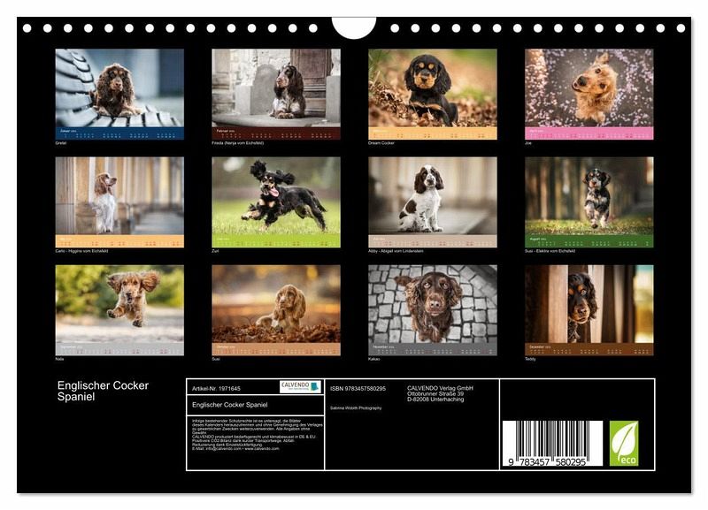 Dieser Kalender zeigt die Vielfalt des Englischen Cocker Spaniels in einigen seinen vielen Farbvarianten. Der Englische Cocker Spaniel fotografisch festgehalten an mehren Orten, ob in der Stadt, in der Natur oder in voller Aktion.