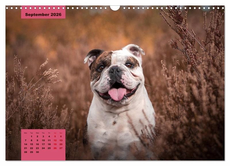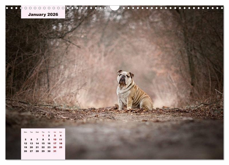 In this wall calendar you will find the breed of the English Bulldog, photographed in beautiful moments by the photographer Sabrina Wobith, Photography - FotosVonMaja.