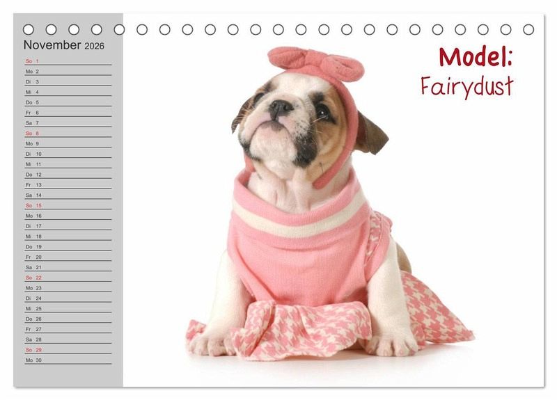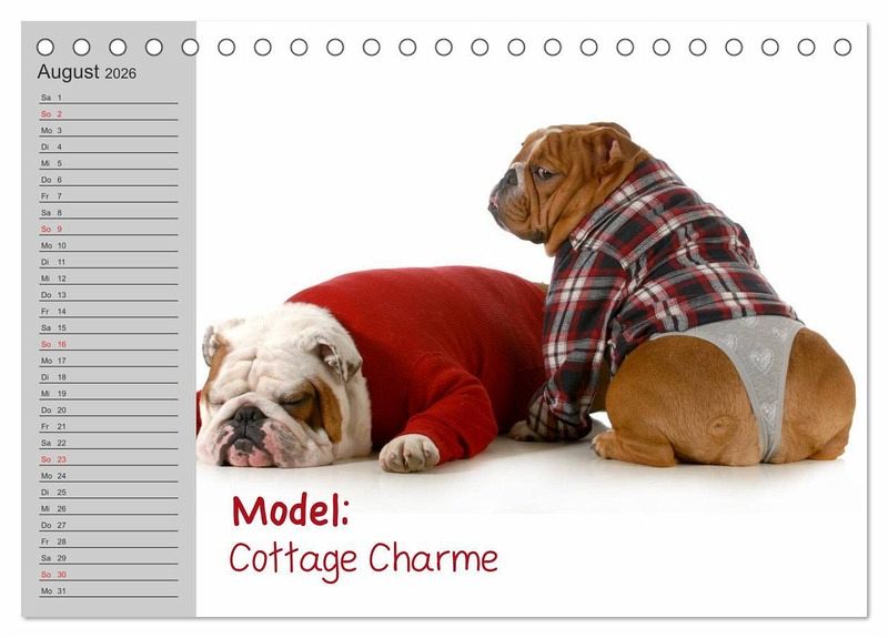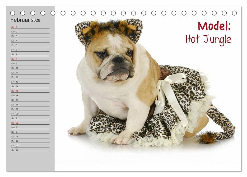 Liebliche Bilder von English Bulldog Models. Ein lustiger Planer für Freunde einer genialen Hunde-Rasse.