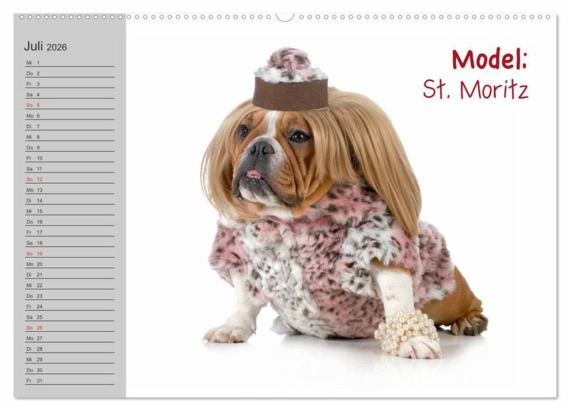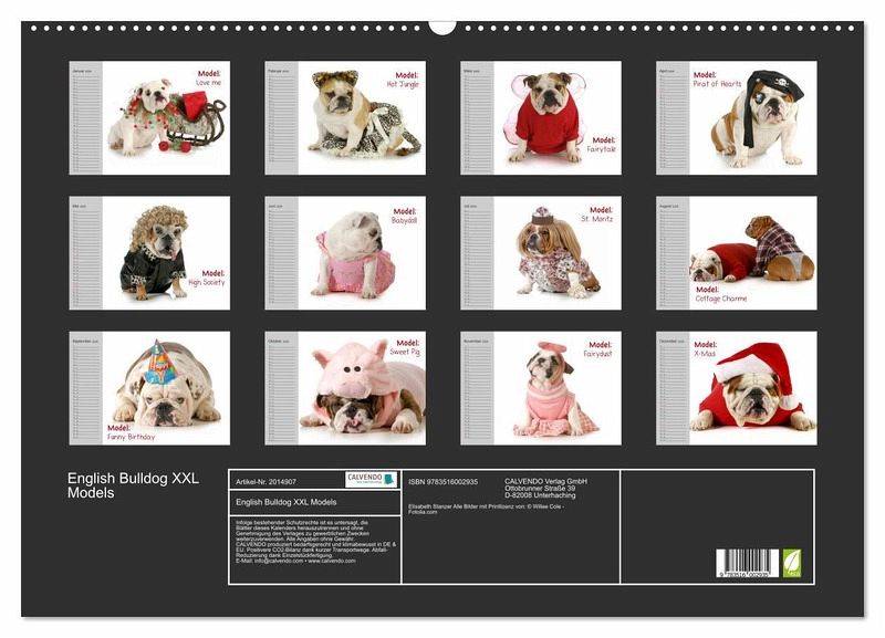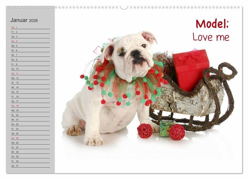 Liebliche Bilder von English Bulldog Models. Ein lustiger Planer für Freunde einer genialen Hunde-Rasse.