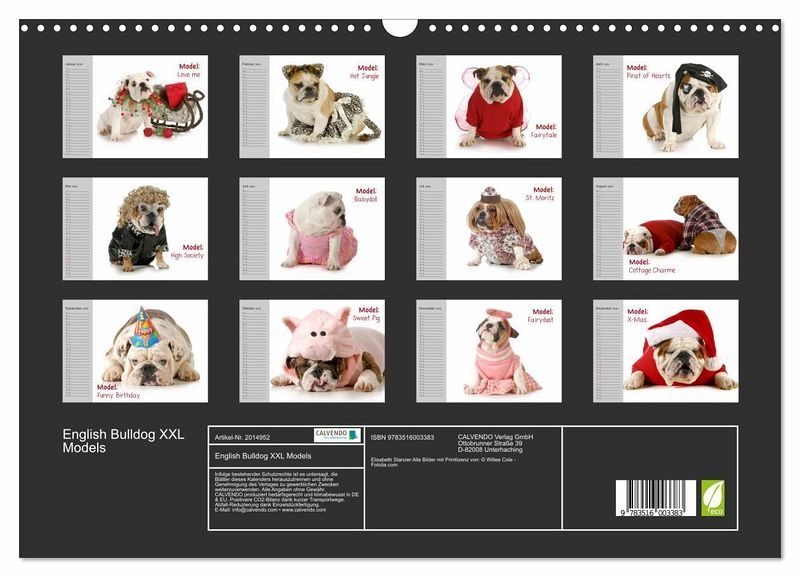 Liebliche Bilder von English Bulldog Models. Ein lustiger Planer für Freunde einer genialen Hunde-Rasse.