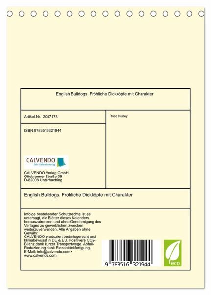 QUALITÄT - Hochwertiger Fotokalender mit 12 wunderschönen Motiven auf lichtbeständigem Bilderdruckpapier, robuste Spiralbindung.NACHHALTIG - deutliche Abfallreduzierung durch bedarfsgerechte Einzelstückfertigung, umweltfreundliches FSC-zertifiziertes Papier, Produktion in Deutschland, klimabewusste Logistik.PERFEKTES GESCHENK - Kalender für Freunde und Familie, für Kinder und Erwachsene, jung und alt, zu Weihnachten, Geburtstag oder zwischendurch.VIELFALT - Bildkalender in verschiedenen Formaten, z.B. DIN A5, DIN A4, DIN A3 sowie DIN A2. Ob Naturmotiv, Gemälde oder Fotos, ideal für ein persönliches Wohlfühlambiente.Englische Bulldoggen sind oft urkomisch und immer herzlich! von Autor(in): Rose Hurley