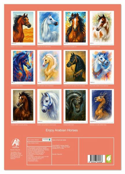PREMIUM COLLECTION - Brilliant photo calendar with 12 beautiful motifs, high-gloss art print in museum quality.QUALITY - high-quality materials, sturdy back cover with 2 innovative insert pockets for optimum presentation on the wall.SUSTAINABLE - significant reduction in waste thanks to customised one-off production, environmentally friendly FSC-certified paper, production in Germany, climate-conscious logistics.PERFECT GIFT - calendars for friends and family, for children and adults, young and old, for Christmas, birthdays or in between.Pride, grace, fire - the calendar for lovers of arabian horses von Autor(in): Kerstin Waurick