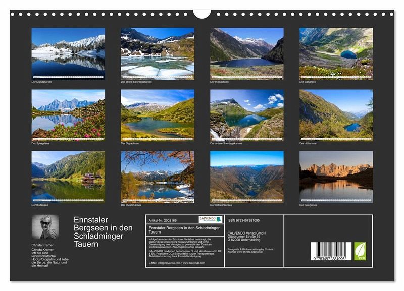 QUALITÄT - Hochwertiger Fotokalender mit 12 wunderschönen Motiven auf lichtbeständigem Bilderdruckpapier, robuste Spiralbindung mit Aufhängebügel.NACHHALTIG - deutliche Abfallreduzierung durch bedarfsgerechte Einzelstückfertigung, umweltfreundliches FSC-zertifiziertes Papier, Produktion in Deutschland, klimabewusste Logistik.PERFEKTES GESCHENK - Kalender für Freunde und Familie, für Kinder und Erwachsene, jung und alt, zu Weihnachten, Geburtstag oder zwischendurch.VIELFALT - Bildkalender in verschiedenen Formaten, z.B. DIN A5, DIN A4, DIN A3 sowie DIN A2. Ob Naturmotiv, Gemälde oder Fotos, ideal für ein persönliches Wohlfühlambiente.Die schönsten Seen in den Schladminger Tauern von Autor(in): Christa Kramer