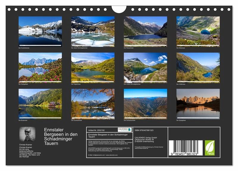 QUALITÄT - Hochwertiger Fotokalender mit 12 wunderschönen Motiven auf lichtbeständigem Bilderdruckpapier, robuste Spiralbindung mit Aufhängebügel.NACHHALTIG - deutliche Abfallreduzierung durch bedarfsgerechte Einzelstückfertigung, umweltfreundliches FSC-zertifiziertes Papier, Produktion in Deutschland, klimabewusste Logistik.PERFEKTES GESCHENK - Kalender für Freunde und Familie, für Kinder und Erwachsene, jung und alt, zu Weihnachten, Geburtstag oder zwischendurch.VIELFALT - Bildkalender in verschiedenen Formaten, z.B. DIN A5, DIN A4, DIN A3 sowie DIN A2. Ob Naturmotiv, Gemälde oder Fotos, ideal für ein persönliches Wohlfühlambiente.Die schönsten Seen in den Schladminger Tauern von Autor(in): Christa Kramer