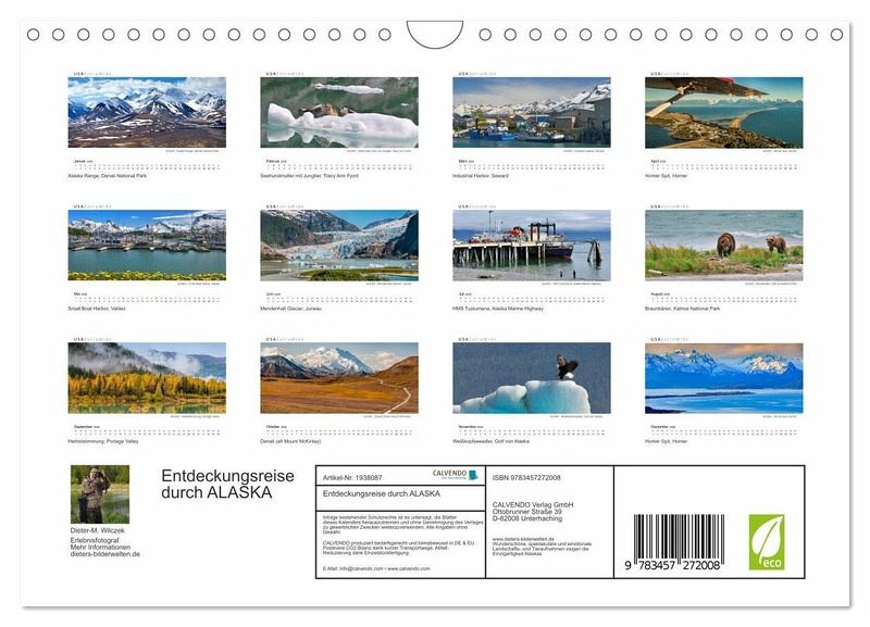In der Kalenderserie von Dieter-M. Wilczek "USA ExtraWide" zeigt der Erlebnisfotograf die faszinierenden Landschaften der USA in besonders ausdrucksstarken Panoramabildern. Kommen Sie mit auf eine Entdeckungsreise durch den nördlichsten Bundesstaat der USA und erleben Sie die Besonderheiten und Schönheit der Landschaften, sowie die Artenvielfalt der Tierwelt.