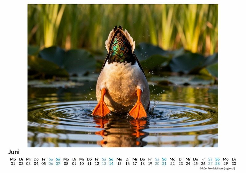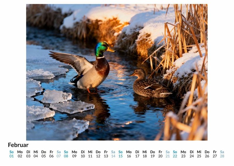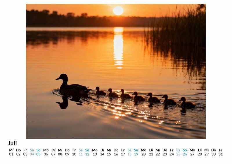 Ein leises Quaken, ein flauschiges Federkleid und die ersten, tapsigen Schritte in eine große, neue Welt. Entenküken faszinieren durch ihre unschuldige Neugier und ihren Charme, der jedem Betrachter ein Lächeln entlockt. Dieser Kalender widmet sich ganz diesen kleinen Lebewesen und ihren ersten Abenteuern. Dieser Kalender ist eine gute Wahl: * Für Liebhaber von Wasservögeln und der heimischen Tierwelt. * Für alle, die sich nach heiteren und unbeschwerten Motiven für ihr Zuhause sehnen. * Für Freunde der Fotografie, die das Besondere im Alltäglichen suchen. Der Kalender "Ente" fängt diese Momente ein. Monat für Monat begleiten die Bilder die kleinen Entenküken bei ihren Entdeckungen. Mal schlafen sie dicht aneinander gekuschelt, mal erkunden sie neugierig das Ufer eines Sees. Jedes Bild wurde aus einer Fülle visueller Datenpunkte zu einer neuen Komposition geformt, was den Szenen eine besondere Tiefe verleiht. Die fotorealistischen Darstellungen zeigen die Tiere in ihrer natürlichen Umgebung und fangen die Stimmung am Wasser ein. Das können Sie erwarten: * Zwölf Monatsmotive rund um das Thema Ente und Küken. * Ein übersichtliches Kalendarium für Termine und Notizen. * Ein Wandkalender im praktischen Format, der in jedem Raum einen Platz findet. Dieser Kalender ist eine Hommage an das junge Leben und die kleinen Wunder der Natur. Er bringt das sanfte Treiben am Wasser direkt an die Wand. Entdecken Sie die Vielfalt der Motive und lassen Sie sich von der charmanten Welt der Enten durch das Jahr begleiten.