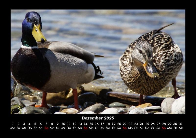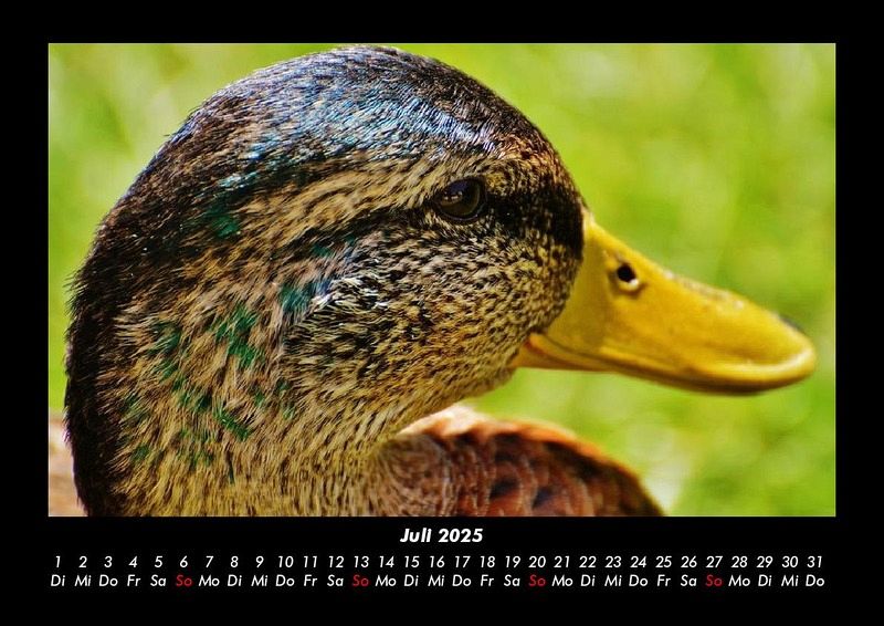 Enten 2025 Motivkalender DIN A3 Vero-Kalender erhalten Sie mit Motiven aus den verschiedensten Themenbereichen wie Natur, Blumen und Landschaft, Tierwelt, Architektur, Reise und Urlaub, Technik, Automobil und Eisenbahn, Emotionen, Sport und Musik. Gedruckt werden die Monats-Kalender aus dem Vero Verlag auf hochwertigem Kalenderbogen in Premium-Qualität und verschiedenen Größen. Die Vielfältigkeit der Motive unserer Foto-Kalender ist dank der Zusammenarbeit mit kreativen Fotografen möglich.