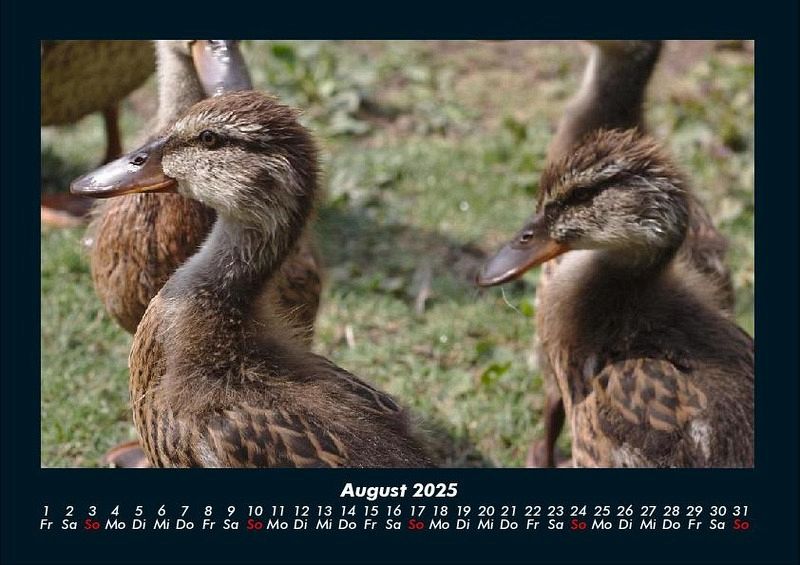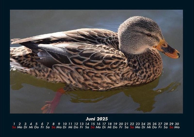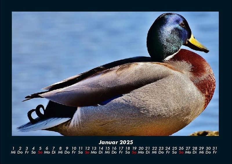 Enten 2025 Motivkalender DIN A4 Vero-Kalender erhalten Sie mit Motiven aus den verschiedensten Themenbereichen wie Natur, Blumen und Landschaft, Tierwelt, Architektur, Reise und Urlaub, Technik, Automobil und Eisenbahn, Emotionen, Sport und Musik. Gedruckt werden die Monats-Kalender aus dem Vero Verlag auf hochwertigem Kalenderbogen in Premium-Qualität und verschiedenen Größen. Die Vielfältigkeit der Motive unserer Foto-Kalender ist dank der Zusammenarbeit mit kreativen Fotografen möglich.
