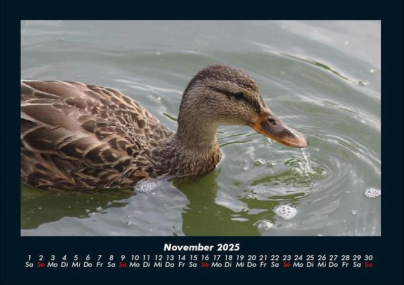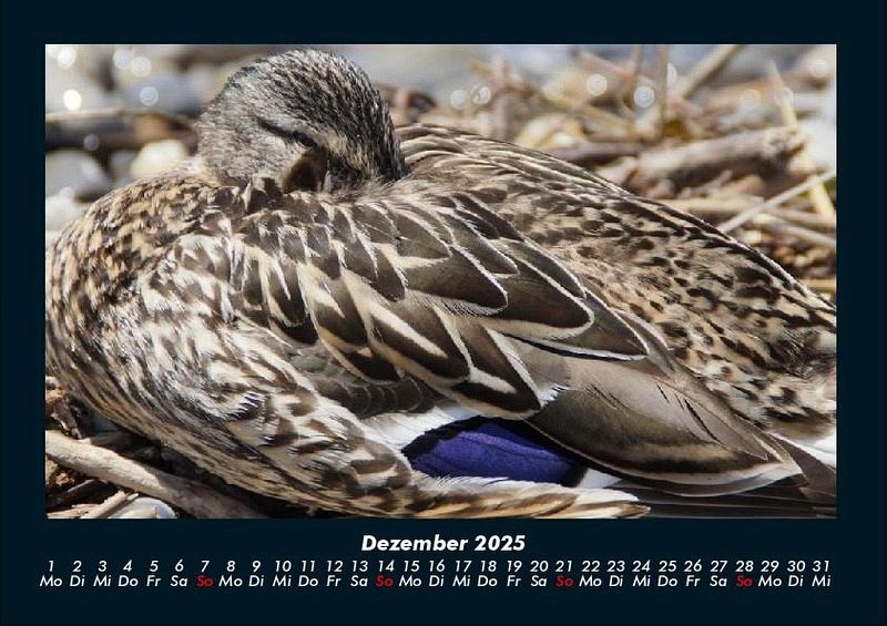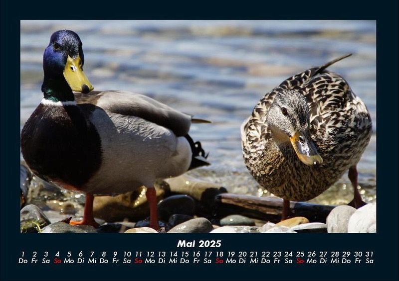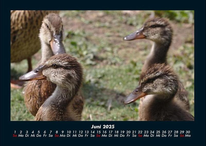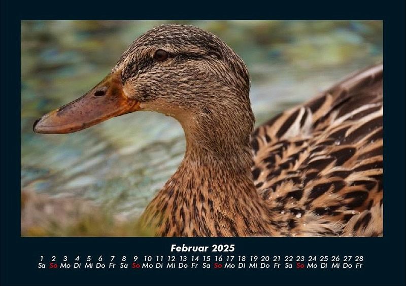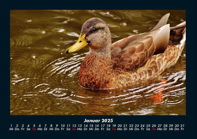Enten 2025 Motivkalender DIN A4 Vero-Kalender erhalten Sie mit Motiven aus den verschiedensten Themenbereichen wie Natur, Blumen und Landschaft, Tierwelt, Architektur, Reise und Urlaub, Technik, Automobil und Eisenbahn, Emotionen, Sport und Musik. Gedruckt werden die Monats-Kalender aus dem Vero Verlag auf hochwertigem Kalenderbogen in Premium-Qualität und verschiedenen Größen. Die Vielfältigkeit der Motive unserer Foto-Kalender ist dank der Zusammenarbeit mit kreativen Fotografen möglich.