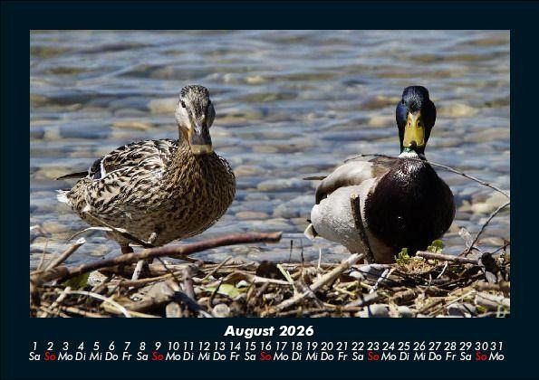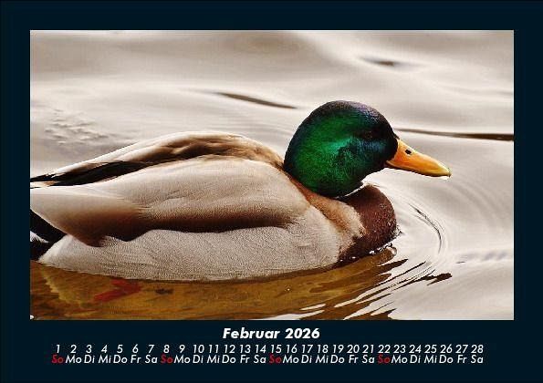 Enten 2026 Motivkalender DIN A5 Dieser Kalender zeigt die verschiedenen Enten in ihrer natürlichen Umgebung. Vero-Kalender erhalten Sie mit Motiven aus den verschiedensten Themenbereichen wie Natur, Blumen und Landschaft, Tierwelt, Architektur, Reise und Urlaub, Technik, Automobil und Eisenbahn, Emotionen, Sport und Musik. Gedruckt werden die Monats-Kalender aus dem Vero Verlag auf hochwertigem Kalenderbogen in Premium-Qualität und verschiedenen Größen. Die Vielfältigkeit der Motive unserer Foto-Kalender ist dank der Zusammenarbeit mit kreativen Fotografen möglich.