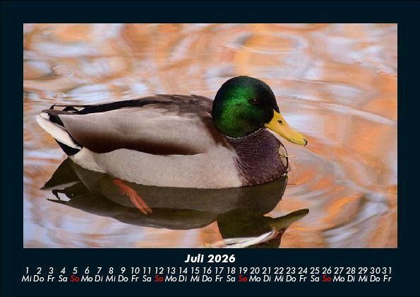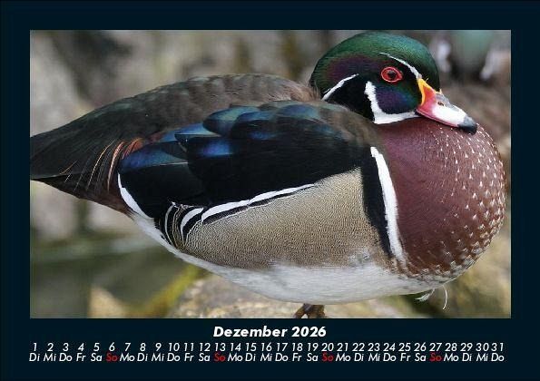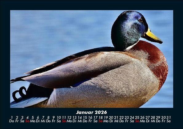 Enten 2026 Motivkalender DIN A5 Dieser Kalender zeigt die verschiedenen Enten in ihrer natürlichen Umgebung. Vero-Kalender erhalten Sie mit Motiven aus den verschiedensten Themenbereichen wie Natur, Blumen und Landschaft, Tierwelt, Architektur, Reise und Urlaub, Technik, Automobil und Eisenbahn, Emotionen, Sport und Musik. Gedruckt werden die Monats-Kalender aus dem Vero Verlag auf hochwertigem Kalenderbogen in Premium-Qualität und verschiedenen Größen. Die Vielfältigkeit der Motive unserer Foto-Kalender ist dank der Zusammenarbeit mit kreativen Fotografen möglich.