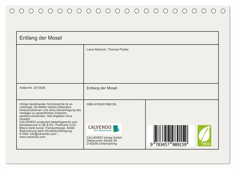 QUALITÄT - Hochwertiger Fotokalender mit 12 wunderschönen Motiven auf lichtbeständigem Bilderdruckpapier, robuste Spiralbindung.NACHHALTIG - deutliche Abfallreduzierung durch bedarfsgerechte Einzelstückfertigung, umweltfreundliches FSC-zertifiziertes Papier, Produktion in Deutschland, klimabewusste Logistik.PERFEKTES GESCHENK - Kalender für Freunde und Familie, für Kinder und Erwachsene, jung und alt, zu Weihnachten, Geburtstag oder zwischendurch.VIELFALT - Bildkalender in verschiedenen Formaten, z.B. DIN A5, DIN A4, DIN A3 sowie DIN A2. Ob Naturmotiv, Gemälde oder Fotos, ideal für ein persönliches Wohlfühlambiente.Fotos von alten Burgen und Weinbergen entlang der Mosel begleiten Sie mit diesem Kalender durch das Jahr. von Autor(in):Thomas Polske