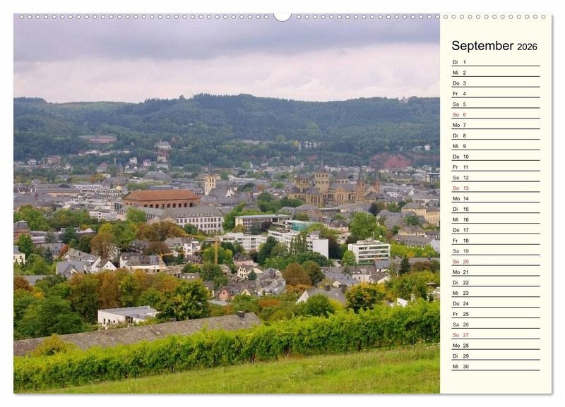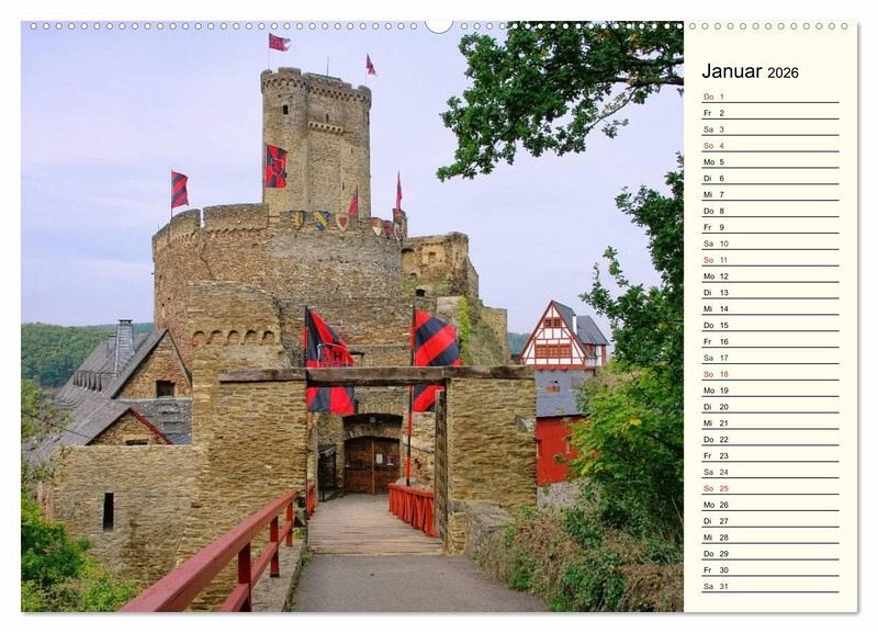 Die Mosel - Mäander des Flusses winden sich zwischen Weinbergen, alten Städten und geschichtsträchtigen Burgen. Entdecken Sie Sehenswürdigkeiten und Landschaften zwischen Trier und Koblenz. Tragen sie ihre Termine, Geburtstage bequem in diesen Planer ein.