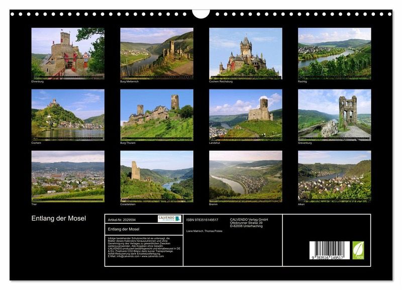 QUALITÄT - Hochwertiger Fotokalender mit 12 wunderschönen Motiven auf lichtbeständigem Bilderdruckpapier, robuste Spiralbindung mit Aufhängebügel.NACHHALTIG - deutliche Abfallreduzierung durch bedarfsgerechte Einzelstückfertigung, umweltfreundliches FSC-zertifiziertes Papier, Produktion in Deutschland, klimabewusste Logistik.PERFEKTES GESCHENK - Kalender für Freunde und Familie, für Kinder und Erwachsene, jung und alt, zu Weihnachten, Geburtstag oder zwischendurch.VIELFALT - Bildkalender in verschiedenen Formaten, z.B. DIN A5, DIN A4, DIN A3 sowie DIN A2. Ob Naturmotiv, Gemälde oder Fotos, ideal für ein persönliches Wohlfühlambiente.Fotos von alten Burgen und Weinbergen entlang der Mosel begleiten Sie mit diesem Kalender durch das Jahr. von Autor(in): Thomas Polske
