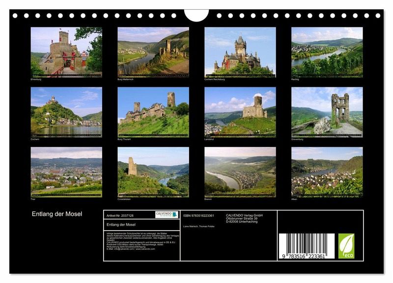 QUALITÄT - Hochwertiger Fotokalender mit 12 wunderschönen Motiven auf lichtbeständigem Bilderdruckpapier, robuste Spiralbindung mit Aufhängebügel.NACHHALTIG - deutliche Abfallreduzierung durch bedarfsgerechte Einzelstückfertigung, umweltfreundliches FSC-zertifiziertes Papier, Produktion in Deutschland, klimabewusste Logistik.PERFEKTES GESCHENK - Kalender für Freunde und Familie, für Kinder und Erwachsene, jung und alt, zu Weihnachten, Geburtstag oder zwischendurch.VIELFALT - Bildkalender in verschiedenen Formaten, z.B. DIN A5, DIN A4, DIN A3 sowie DIN A2. Ob Naturmotiv, Gemälde oder Fotos, ideal für ein persönliches Wohlfühlambiente.Fotos von alten Burgen und Weinbergen entlang der Mosel begleiten Sie mit diesem Kalender durch das Jahr. von Autor(in): Thomas Polske