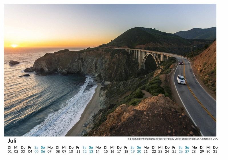 Erleben Sie die atemberaubende Schönheit der kalifornischen Küste mit unserem exklusiven Wandkalender "Entlang des Highway One". Lassen Sie sich Monat für Monat von 12 sorgfältig ausgewählten Motiven verzaubern, die die spektakulären Landschaften und ikonischen Orte dieser legendären Route einfangen. Gedruckt auf hochwertigem, lichtbeständigem Bilderdruckpapier, bringt dieser Kalender die Magie des Highway One direkt in Ihr Zuhause. Nachhaltig in Deutschland auf FSC-zertifiziertem Papier produziert, vereint er beeindruckende Bildqualität mit umweltbewusstem Design. Perfekt als Geschenk oder für die eigene Wand ¿ holen Sie sich ein Stück Kalifornien in Ihr Leben! Hochwertig Erleben Sie ein Jahr voller Eleganz mit unserem Premium-Fotokalender. Jedes der 12 Motive ist auf hochwertigem, lichtbeständigem Bilderdruckpapier gedruckt, um die Lebendigkeit jedes Bildes zu bewahren. Die robuste Spiralbindung gewährleistet Langlebigkeit und einfache Handhabung. Nachhaltig Unser Engagement für die Umwelt spiegelt sich in jedem Exemplar wider. Durch die Produktion auf Abruf reduzieren wir signifikant unseren Abfall. Wir verwenden ausschließlich umweltfreundliches, FSC-zertifiziertes Papier. Stolz gefertigt in Deutschland, achten wir bei unserer Logistik auf Klimaschutz, um unseren ökologischen Fußabdruck zu minimieren. Das ideale Geschenk Dieser Kalender ist das perfekte Präsent für jeden Anlass ¿ ob Weihnachten, Geburtstage oder einfach als liebevolle Aufmerksamkeit zwischendurch. Geeignet für Freunde, Familie, Kinder und Erwachsene gleichermaßen, bereichert er jedes Zuhause mit seiner Vielfalt und Schönheit, unabhängig vom Alter der Beschenkten.