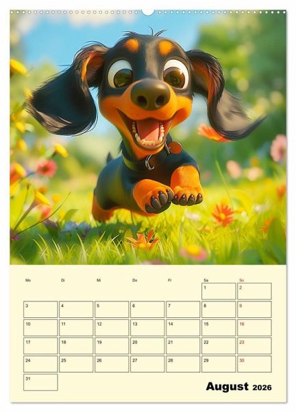 bezaubernden Cartoon-Hündchen. Jeder Monat wurde mit Hilfe von KI erstellt und bringt ein neues, liebevoll illustriertes Hündchen in jedes Zuhause. Ideal für Hundeliebhaber und Cartoon-Fans gleichermaßen. Lassen Sie sich von der niedlichen Welt der fröhlichen Hunde verzaubern!