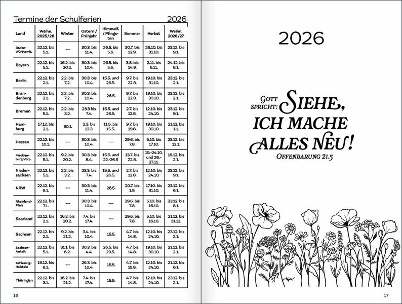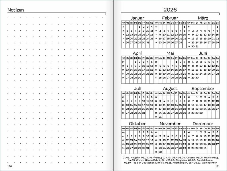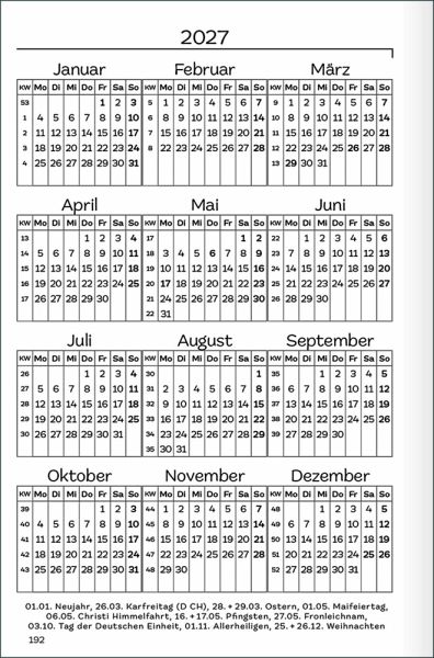 Ein Terminkalender, der durch Dick und Dünn mitgehtDer tägliche Begleiter im gefälligen Notice-Format. Mit ausgelosten Bibelversen für jeden Tag und Platz für Eintragungen.Termin-Kalender 9 x 14 cm:- je eine Doppelseite pro Woche- 192 Seiten, gebunden, mit Lesebändchen und GummiverschlussErgänzen Sie diesen Kalender durch die praktische Stiftschlaufe RKW 99070 (EAN 4034905990704) zum Ankleben. So haben Sie Ihren Stift für Eintragungen immer zur Hand.