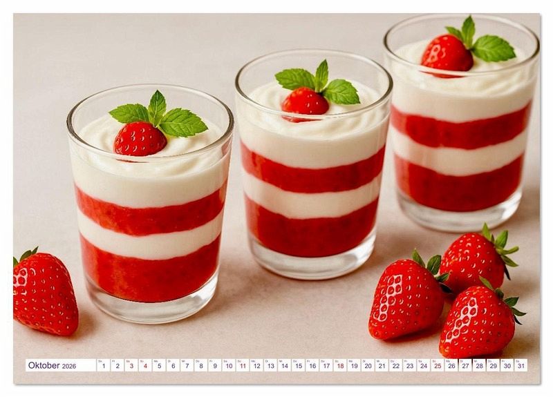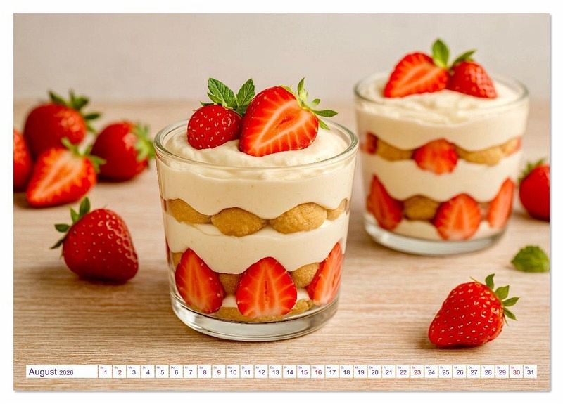 Dieser leckere Kalender widmet sich ganz der Königin der Beeren. Die köstlichen Motive, die Steffani Lehmann mit Unterstützung einer KI editiert hat, zeigen Erdbeertorte, Bowle, Salat oder Tiramisu - jedes Bild zeigt die Frucht in ihrem schönsten Licht: frisch, sinnlich und voll Genuss. Perfekt für alle, die Erdbeeren lieben.