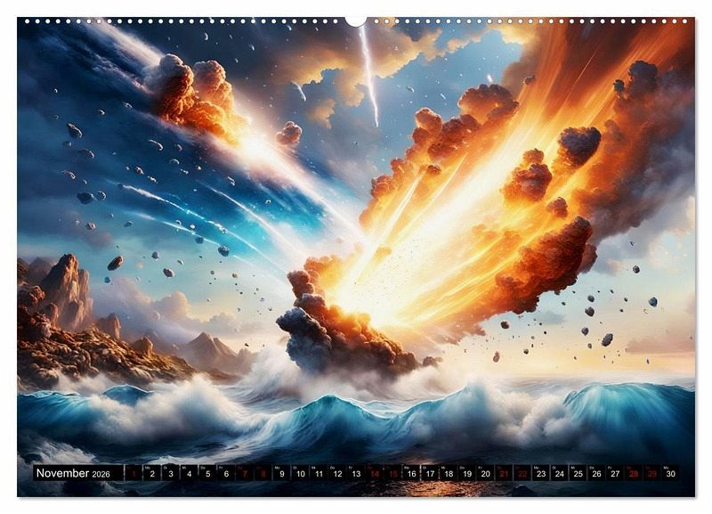 Tauchen Sie ein in eine Welt, in der die Erde ihre wahre Stärke zeigt. Unser einzigartiger Kalender, erstellt mit KI-Technologie, fängt atemberaubende Momente eines Meteoriteneinschlags ein. Doch keine Sorge, die Erde überlebt und zeigt ihre unerschütterliche Widerstandskraft. Jeder Monat enthüllt ein neues, spektakuläres Bild eines Meteors, der auf die Erde trifft.