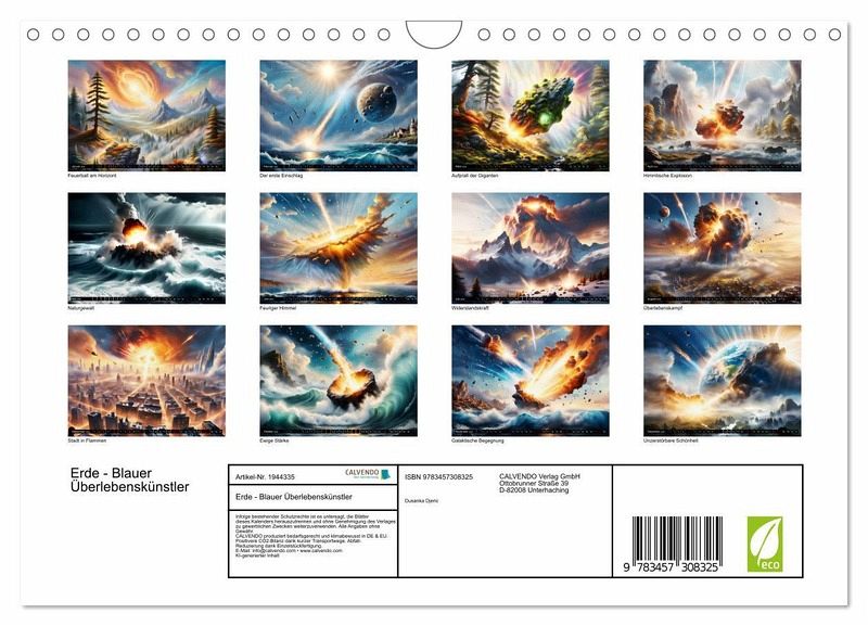 Tauchen Sie ein in eine Welt, in der die Erde ihre wahre Stärke zeigt. Unser einzigartiger Kalender, erstellt mit KI-Technologie, fängt atemberaubende Momente eines Meteoriteneinschlags ein. Doch keine Sorge, die Erde überlebt und zeigt ihre unerschütterliche Widerstandskraft. Jeder Monat enthüllt ein neues, spektakuläres Bild eines Meteors, der auf die Erde trifft.