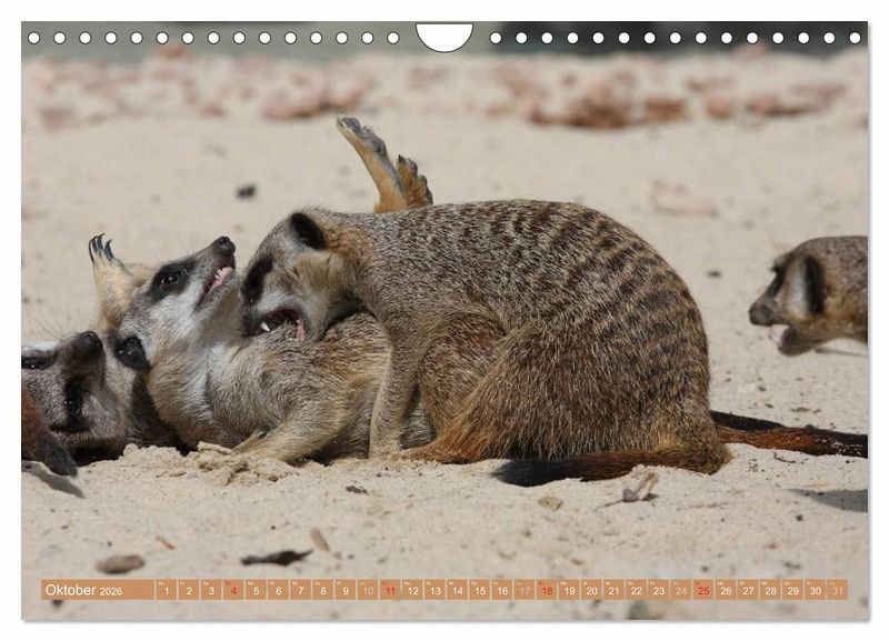 Ein paar dieser wunderbaren Momente aus dem Familenleben der Erdmännchen wurden von einer Tierfotografin eingefangen und in diesem schönen Kalender mit seinen 12 Motiven veröffentlicht.