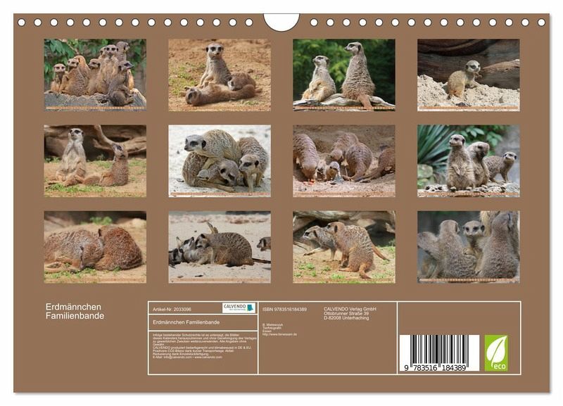 QUALITÄT - Hochwertiger Fotokalender mit 12 wunderschönen Motiven auf lichtbeständigem Bilderdruckpapier, robuste Spiralbindung mit Aufhängebügel.NACHHALTIG - deutliche Abfallreduzierung durch bedarfsgerechte Einzelstückfertigung, umweltfreundliches FSC-zertifiziertes Papier, Produktion in Deutschland, klimabewusste Logistik.PERFEKTES GESCHENK - Kalender für Freunde und Familie, für Kinder und Erwachsene, jung und alt, zu Weihnachten, Geburtstag oder zwischendurch.VIELFALT - Bildkalender in verschiedenen Formaten, z.B. DIN A5, DIN A4, DIN A3 sowie DIN A2. Ob Naturmotiv, Gemälde oder Fotos, ideal für ein persönliches Wohlfühlambiente.Naturfotos der in Familien lebenden Erdmännchen von Autor(in): Barbara Mielewczyk