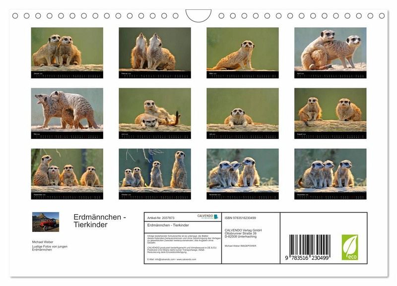 QUALITÄT - Hochwertiger Fotokalender mit 12 wunderschönen Motiven auf lichtbeständigem Bilderdruckpapier, robuste Spiralbindung mit Aufhängebügel.NACHHALTIG -deutliche Abfallreduzierung durch bedarfsgerechte Einzelstückfertigung, umweltfreundliches FSC-zertifiziertes Papier, Produktion in Deutschland, klimabewusste Logistik.PERFEKTES GESCHENK - Kalender für Freunde und Familie, für Kinder und Erwachsene, jung und alt, zu Weihnachten, Geburtstag oder zwischendurch.VIELFALT - Bildkalender in verschiedenen Formaten, z.B. DIN A5, DIN A4, DIN A3 sowie DIN A2. Ob Naturmotiv, Gemälde oder Fotos, ideal für ein persönliches Wohlfühlambiente.Lustige Fotos von jungen Erdmännchen von Autor(in): Michael Weber