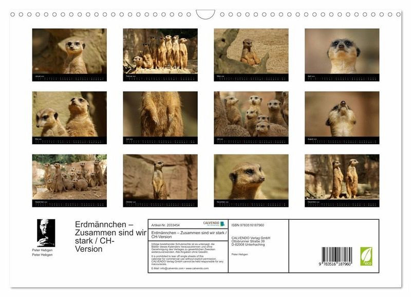 QUALITÄT - Hochwertiger Fotokalender mit 12 wunderschönen Motiven auf lichtbeständigem Bilderdruckpapier, robuste Spiralbindung mit Aufhängebügel.NACHHALTIG - deutliche Abfallreduzierung durch bedarfsgerechte Einzelstückfertigung, umweltfreundliches FSC-zertifiziertes Papier, Produktion in Deutschland, klimabewusste Logistik.PERFEKTES GESCHENK - Kalender für Freunde und Familie, für Kinder und Erwachsene, jung und alt, zu Weihnachten, Geburtstag oder zwischendurch.VIELFALT - Bildkalender in verschiedenen Formaten, z.B. DIN A5, DIN A4, DIN A3 sowie DIN A2. Ob Naturmotiv, Gemälde oder Fotos, ideal für ein persönliches Wohlfühlambiente.Bilder vom Erdmännchen-Alltag von Autor(in): Peter Hebgen