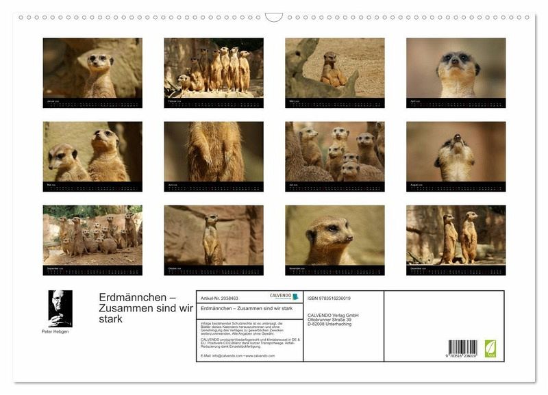 QUALITÄT - Hochwertiger Fotokalender mit 12 wunderschönen Motiven auf lichtbeständigem Bilderdruckpapier, robuste Spiralbindung mit Aufhängebügel.NACHHALTIG - deutliche Abfallreduzierung durch bedarfsgerechte Einzelstückfertigung, umweltfreundliches FSC-zertifiziertes Papier, Produktion in Deutschland, klimabewusste Logistik.PERFEKTES GESCHENK - Kalender für Freunde und Familie, für Kinder und Erwachsene, jung und alt, zu Weihnachten, Geburtstag oder zwischendurch.VIELFALT - Bildkalender in verschiedenen Formaten, z.B. DIN A5, DIN A4, DIN A3 sowie DIN A2. Ob Naturmotiv, Gemälde oder Fotos, ideal für ein persönliches Wohlfühlambiente.Bilder vom Erdmännchen-Alltag von Autor(in): Peter Hebgen