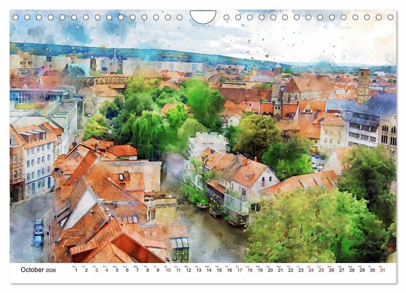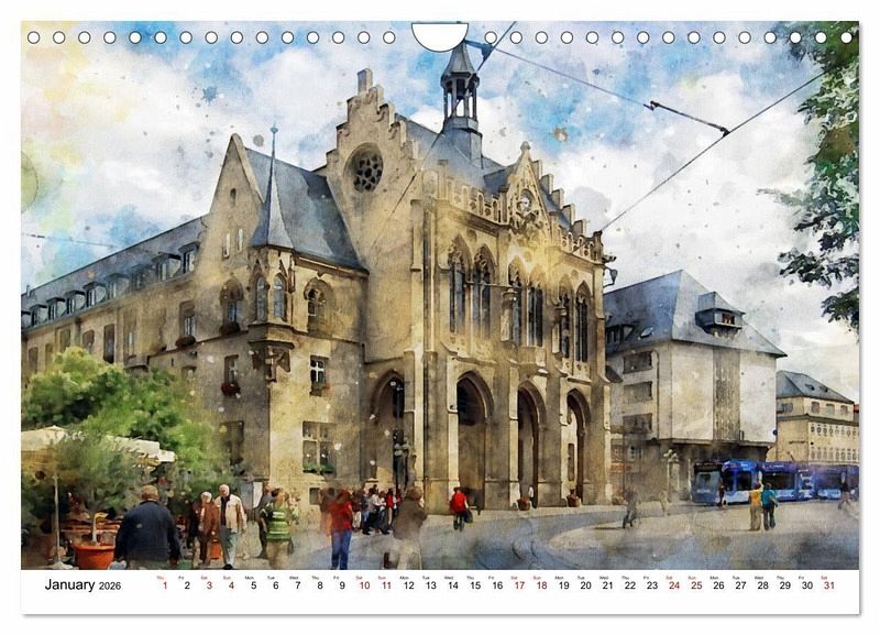 QUALITY - High-quality photo calendar with 12 beautiful images on light-resistant paper, robust spiral binding with hanger.SUSTAINABLE - Significant waste reduction due to print-on-demand production, environmentally friendly FSC-certified paper, produced in the UK, climate-conscious logistical processes.PERFECT GIFT - calendars for friends and family, for children, all ages and all occasions, from Christmas to birthdays and everything in between.LOTS OF CHOICE - Wall calendars in different sizes (DIN A4 and DIN A3), for any topic and personal taste, featuring photography, painting and illustrations.Sights of the city in Thuringia, author: Anja Frost