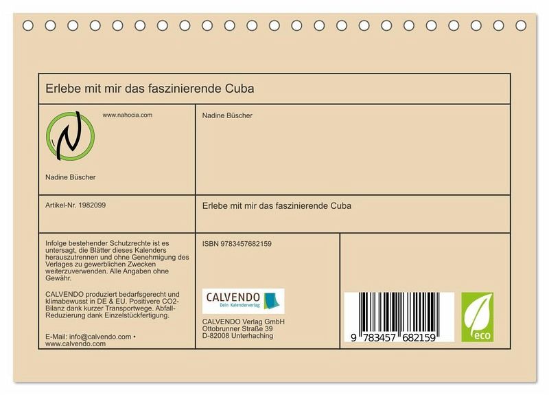 QUALITÄT - Hochwertiger Fotokalender mit 12 wunderschönen Motiven auf lichtbeständigem Bilderdruckpapier, robuste Spiralbindung.NACHHALTIG - deutliche Abfallreduzierung durch bedarfsgerechte Einzelstückfertigung, umweltfreundliches FSC-zertifiziertes Papier, Produktion in Deutschland, klimabewusste Logistik.PERFEKTES GESCHENK - Kalender für Freunde und Familie, für Kinder und Erwachsene, jung und alt, zu Weihnachten, Geburtstag oder zwischendurch.VIELFALT - Bildkalender in verschiedenen Formaten, z.B. DIN A5, DIN A4, DIN A3 sowie DIN A2. Ob Naturmotiv, Gemälde oder Fotos, ideal für ein persönliches Wohlfühlambiente.Cuba ist ein Land voller Traditionen und Naturschönheit. von Autor(in): Nadine Büscher