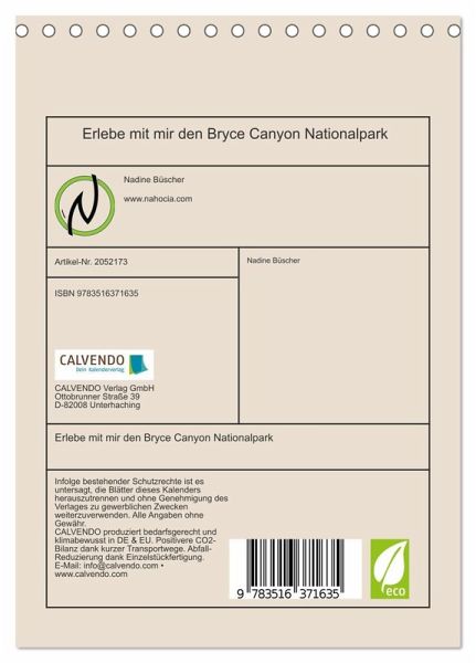 QUALITÄT - Hochwertiger Fotokalender mit 12 wunderschönen Motiven auf lichtbeständigem Bilderdruckpapier, robuste Spiralbindung.NACHHALTIG - deutliche Abfallreduzierung durch bedarfsgerechte Einzelstückfertigung, umweltfreundliches FSC-zertifiziertes Papier, Produktion in Deutschland, klimabewusste Logistik.PERFEKTES GESCHENK - Kalender für Freunde und Familie, für Kinder und Erwachsene, jung und alt, zu Weihnachten, Geburtstag oder zwischendurch.VIELFALT - Bildkalender in verschiedenen Formaten, z.B. DIN A5, DIN A4, DIN A3 sowie DIN A2. Ob Naturmotiv, Gemälde oder Fotos, ideal für ein persönliches Wohlfühlambiente.Bryce Canyon ist ein weitläufiger Park im Süden von Utah. von Autor(in): Nadine Büscher