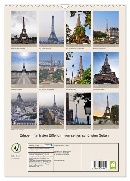 QUALITÄT - Hochwertiger Fotokalender mit 12 wunderschönen Motiven auf lichtbeständigem Bilderdruckpapier, robuste Spiralbindung mit Aufhängebügel.NACHHALTIG - deutliche Abfallreduzierung durch bedarfsgerechte Einzelstückfertigung, umweltfreundliches FSC-zertifiziertes Papier, Produktion in Deutschland, klimabewusste Logistik.PERFEKTES GESCHENK - Kalender für Freunde und Familie, für Kinder und Erwachsene, jung und alt, zu Weihnachten, Geburtstag oder zwischendurch.VIELFALT - Bildkalender in verschiedenen Formaten, z.B. DIN A5, DIN A4, DIN A3 sowie DIN A2. Ob Naturmotiv, Gemälde oder Fotos, ideal für ein persönliches Wohlfühlambiente.Der Eiffelturm zählt wohl zu den bedeutendste Bauwerken von Paris. von Autor(in): Nadine Büscher