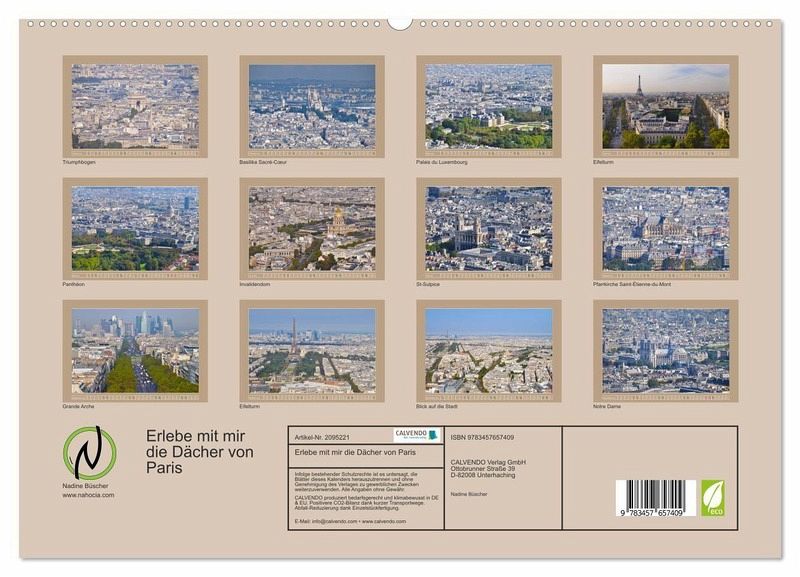 PREMIUM-LINIE - Brillanter Fotokalender mit 12 wunderschönen Motiven, Kunstdruck in Hochglanz in Museumsqualität.QUALITÄT - edle Materialien, stabile Rückwand mit 2 innovativen Einstecktaschen für eine optimale Präsentation an der Wand.NACHHALTIG - deutliche Abfallreduzierung durch bedarfsgerechte Einzelstückfertigung, umweltfreundliches FSC-zertifiziertes Papier, Produktion in Deutschland, klimabewusste Logistik.PERFEKTES GESCHENK - Kalender für Freunde und Familie, für Kinder und Erwachsene, jung und alt, zu Weihnachten, Geburtstag oder zwischendurch.Paris ist wohl eine der schönsten Städte der Welt. von Autor(in): Nadine Büscher