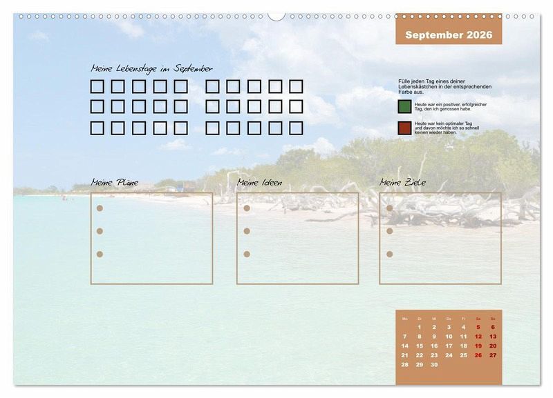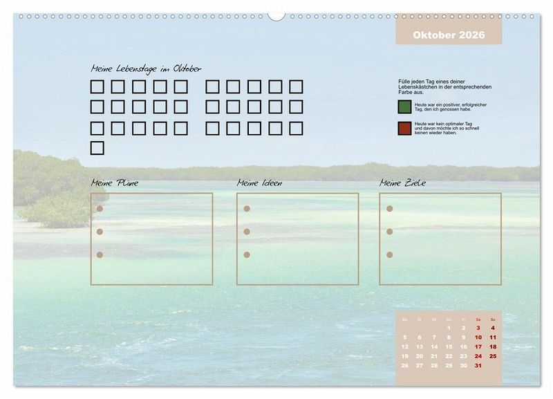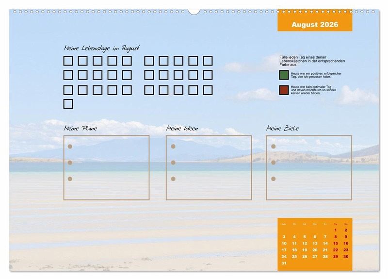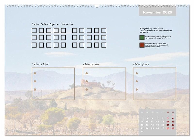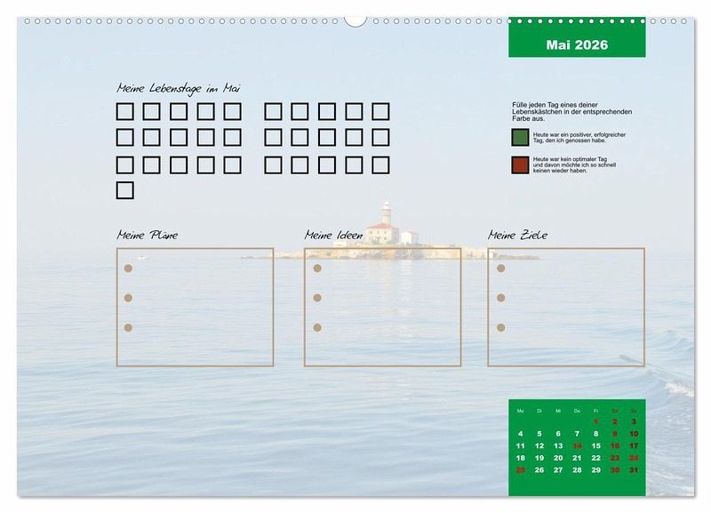 Egal ob es ein guter oder ein schlechter Tag ist, er gehört zu deinem Leben und prägt dich. Erlebe mit diesem Kalender jeden Tag des Jahres bewusster. Fülle jeden Tag ein Kästchen aus. Gerne in unterschiedlichen Farben, um dir die Vergänglichkeit und die Besonderheit jedes einzelnen Tages deutlich zu machen.