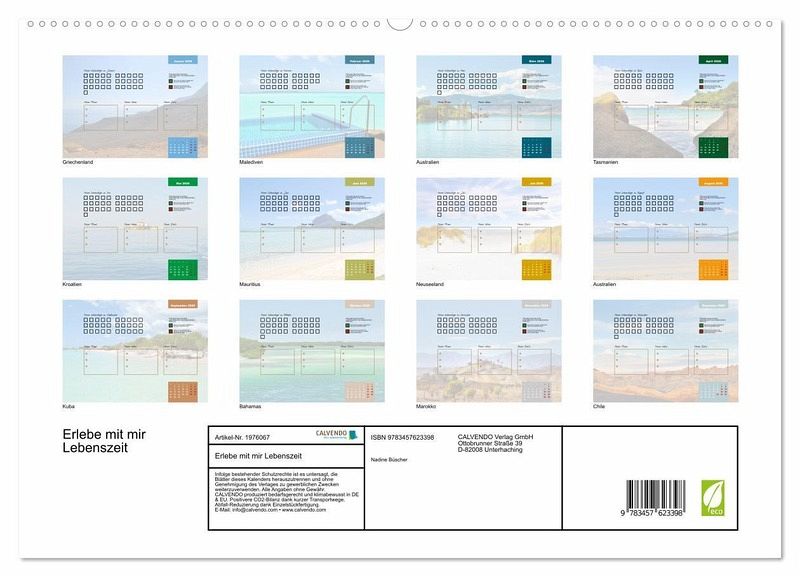 QUALITÄT - Hochwertiger Fotokalender mit 12 wunderschönen Motiven auf lichtbeständigem Bilderdruckpapier, robuste Spiralbindung mit Aufhängebügel.NACHHALTIG - deutliche Abfallreduzierung durch bedarfsgerechte Einzelstückfertigung, umweltfreundliches FSC-zertifiziertes Papier, Produktion in Deutschland, klimabewusste Logistik.PERFEKTES GESCHENK - Kalender für Freunde und Familie, für Kinder und Erwachsene, jung und alt, zu Weihnachten, Geburtstag oder zwischendurch.VIELFALT - Bildkalender in verschiedenen Formaten, z.B. DIN A5, DIN A4, DIN A3 sowie DIN A2. Ob Naturmotiv, Gemälde oder Fotos, ideal für ein persönliches Wohlfühlambiente.Zeit ist kostbar und sollte immer bewußt erlebt werden. von Autor(in): Nadine Büscher