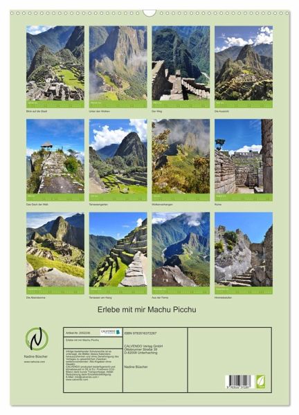 QUALITÄT - Hochwertiger Fotokalender mit 12 wunderschönen Motiven auf lichtbeständigem Bilderdruckpapier, robuste Spiralbindung mit Aufhängebügel.NACHHALTIG - deutliche Abfallreduzierung durch bedarfsgerechte Einzelstückfertigung, umweltfreundliches FSC-zertifiziertes Papier, Produktion in Deutschland, klimabewusste Logistik.PERFEKTES GESCHENK - Kalender für Freunde und Familie, für Kinder und Erwachsene, jung und alt, zu Weihnachten, Geburtstag oder zwischendurch.VIELFALT - Bildkalender in verschiedenen Formaten, z.B. DIN A5, DIN A4, DIN A3 sowie DIN A2. Ob Naturmotiv, Gemälde oder Fotos, ideal für ein persönliches Wohlfühlambiente.Machu Picchu ist eine gut erhaltene Ruinenstadt in Peru. von Autor(in): Nadine Büscher