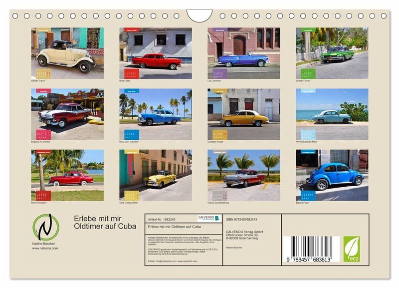 QUALITÄT - Hochwertiger Fotokalender mit 12 wunderschönen Motiven auf lichtbeständigem Bilderdruckpapier, robuste Spiralbindung mit Aufhängebügel.NACHHALTIG - deutliche Abfallreduzierung durch bedarfsgerechte Einzelstückfertigung, umweltfreundliches FSC-zertifiziertes Papier, Produktion in Deutschland, klimabewusste Logistik.PERFEKTES GESCHENK - Kalender für Freunde und Familie, für Kinder und Erwachsene, jung und alt, zu Weihnachten, Geburtstag oder zwischendurch.VIELFALT - Bildkalender in verschiedenen Formaten, z.B. DIN A5, DIN A4, DIN A3 sowie DIN A2. Ob Naturmotiv, Gemälde oder Fotos, ideal für ein persönliches Wohlfühlambiente.Cuba ist ein Land voller schöner alter Autos. von Autor(in): Nadine Büscher