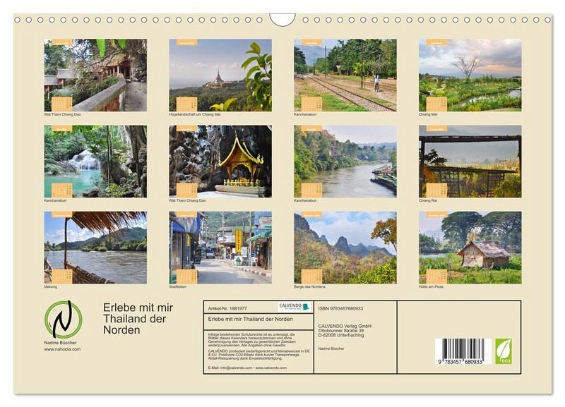 QUALITÄT - Hochwertiger Fotokalender mit 12 wunderschönen Motiven auf lichtbeständigem Bilderdruckpapier, robuste Spiralbindung mit Aufhängebügel.NACHHALTIG - deutliche Abfallreduzierung durch bedarfsgerechte Einzelstückfertigung, umweltfreundliches FSC-zertifiziertes Papier, Produktion in Deutschland, klimabewusste Logistik.PERFEKTES GESCHENK - Kalender für Freunde und Familie, für Kinder und Erwachsene, jung und alt, zu Weihnachten, Geburtstag oder zwischendurch.VIELFALT - Bildkalender in verschiedenen Formaten, z.B. DIN A5, DIN A4, DIN A3 sowie DIN A2. Ob Naturmotiv, Gemälde oder Fotos, ideal für ein persönliches Wohlfühlambiente.Thailands Norden ist abwechslungsreich und beeindruckt mit seiner Naturschönheit. von Autor(in): Nadine Büscher