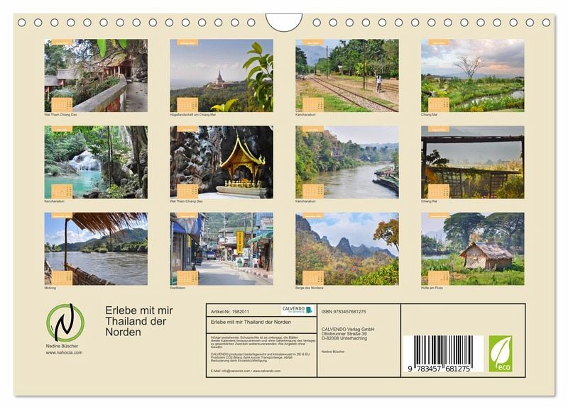 QUALITÄT - Hochwertiger Fotokalender mit 12 wunderschönen Motiven auf lichtbeständigem Bilderdruckpapier, robuste Spiralbindung mit Aufhängebügel.NACHHALTIG - deutliche Abfallreduzierung durch bedarfsgerechte Einzelstückfertigung, umweltfreundliches FSC-zertifiziertes Papier, Produktion in Deutschland, klimabewusste Logistik.PERFEKTES GESCHENK - Kalender für Freunde und Familie, für Kinder und Erwachsene, jung und alt, zu Weihnachten, Geburtstag oder zwischendurch.VIELFALT - Bildkalender in verschiedenen Formaten, z.B. DIN A5, DIN A4, DIN A3 sowie DIN A2. Ob Naturmotiv, Gemälde oder Fotos, ideal für ein persönliches Wohlfühlambiente.Thailands Norden ist abwechslungsreich und beeindruckt mit seiner Naturschönheit. von Autor(in): Nadine Büscher