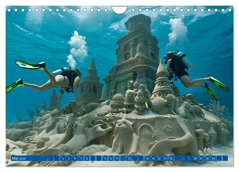 Tauchen Sie ein in die faszinierende Unterwasserwelt und entdecken Sie atemberaubende Korallenriffe voller bunter Fische und vielfältiger Meeresbewohner. Erleben Sie die Stille und Schwerelosigkeit, während majestätische Meerestiere wie Mantarochen und Schildkröten an Ihnen vorbeigleiten. Jeder Monat bringt Sie zu einem neuen, atemberaubenden Tauchspot, der die Schönheit und das Wunder unserer Ozeane mit Hilfe von KI offenbart.