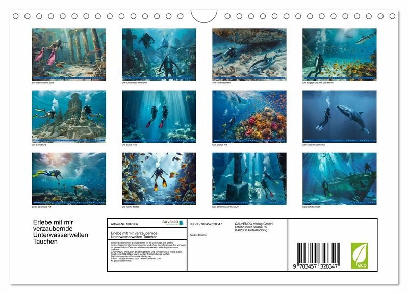 QUALITÄT - Hochwertiger Fotokalender mit 12 wunderschönen Motiven auf lichtbeständigem Bilderdruckpapier, robuste Spiralbindung mit Aufhängebügel.NACHHALTIG - deutliche Abfallreduzierung durch bedarfsgerechte Einzelstückfertigung, umweltfreundliches FSC-zertifiziertes Papier, Produktion in Deutschland, klimabewusste Logistik.PERFEKTES GESCHENK - Kalender für Freunde und Familie, für Kinder und Erwachsene, jung und alt, zu Weihnachten, Geburtstag oder zwischendurch.VIELFALT - Bildkalender in verschiedenen Formaten, z.B. DIN A5, DIN A4, DIN A3 sowie DIN A2. Ob Naturmotiv, Gemälde oder Fotos, ideal für ein persönliches Wohlfühlambiente.Ein Jahr des Tauchens in wunderschönen Meereslandschaften. von Autor(in): Nadine Büscher