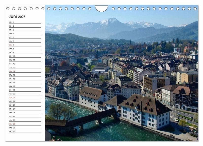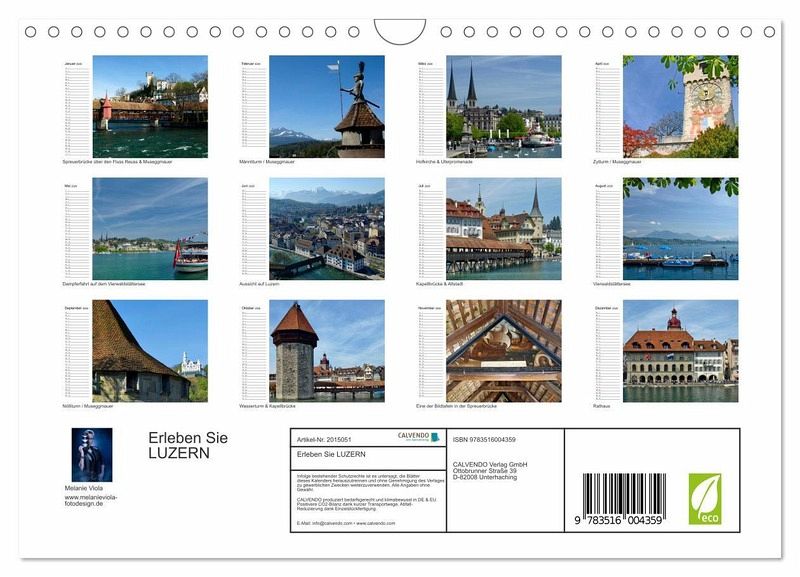 Luzern ist eines der sehenswertesten Städte in der Schweiz und bietet reizvolle historische Sehenswürdigkeiten auf engstem Raum. Die herrliche Landschaft mit dem Vierwaldstättersee und der Bergkulisse ist bezaubernd. Entdecken Sie Luzern mit diesem Kalender in 13 idyllischen Motiven.
