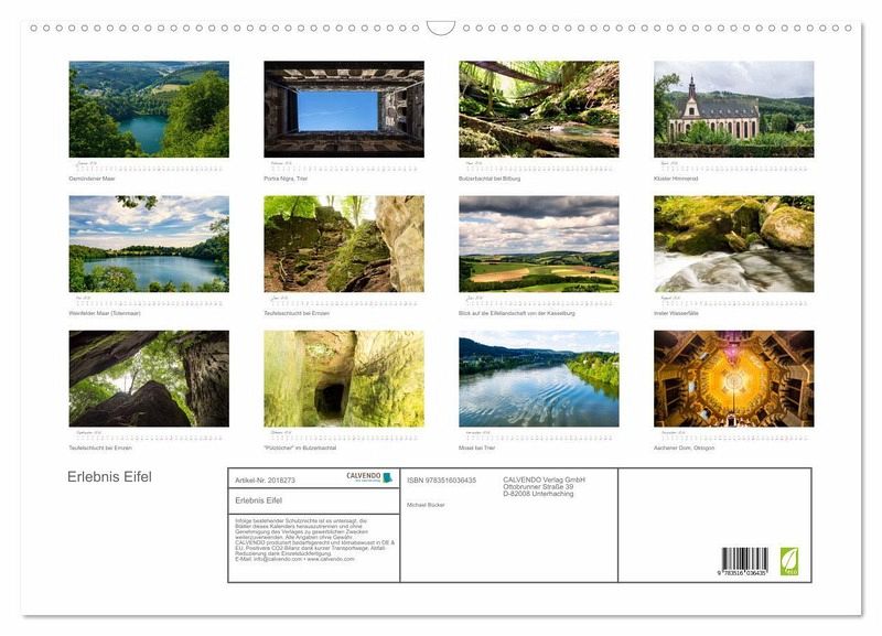 QUALITÄT - Hochwertiger Fotokalender mit 12 wunderschönen Motiven auf lichtbeständigem Bilderdruckpapier, robuste Spiralbindung mit Aufhängebügel.NACHHALTIG - deutliche Abfallreduzierung durch bedarfsgerechte Einzelstückfertigung, umweltfreundliches FSC-zertifiziertes Papier, Produktion in Deutschland, klimabewusste Logistik.PERFEKTES GESCHENK - Kalender für Freunde und Familie, für Kinder und Erwachsene, jung und alt, zu Weihnachten, Geburtstag oder zwischendurch.VIELFALT - Bildkalender in verschiedenen Formaten, z.B. DIN A5, DIN A4, DIN A3 sowie DIN A2. Ob Naturmotiv, Gemälde oder Fotos, ideal für ein persönliches Wohlfühlambiente.Die Eifel zwischen Aachen und Trier von Autor(in): Michael Bücker