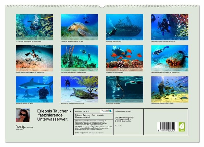 QUALITÄT - Hochwertiger Fotokalender mit 12 wunderschönen Motiven auf lichtbeständigem Bilderdruckpapier, robuste Spiralbindung mit Aufhängebügel.NACHHALTIG - deutliche Abfallreduzierung durch bedarfsgerechte Einzelstückfertigung, umweltfreundliches FSC-zertifiziertes Papier, Produktion inDeutschland, klimabewusste Logistik.PERFEKTES GESCHENK - Kalender für Freunde und Familie, für Kinder und Erwachsene, jung und alt, zu Weihnachten, Geburtstag oder zwischendurch.VIELFALT - Bildkalender in verschiedenen Formaten, z.B. DIN A5, DIN A4, DIN A3 sowie DIN A2. Ob Naturmotiv, Gemälde oder Fotos, ideal für ein persönliches Wohlfühlambiente.Spektakuläre Bilder von traumhaften Tauchrevieren der Erde von Autor(in): Renate Bleicher